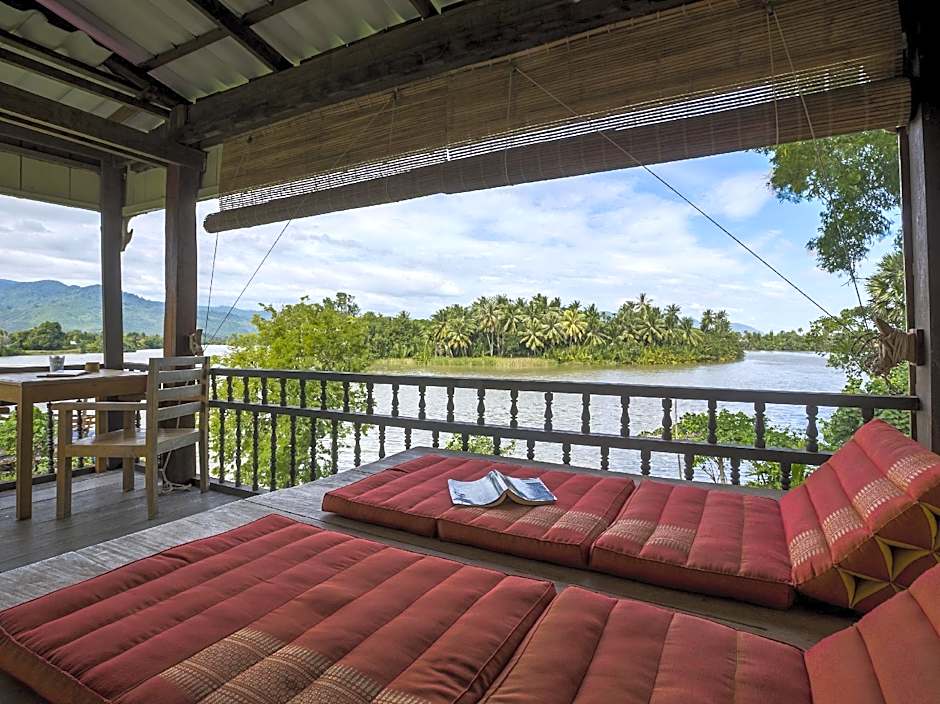 sits about from Kampot’s city center, at Wat Teuk Veul Pagoda, Kampong Kreang, with a private entrance and a private beach area along the riverfront. Scenic views span mountains, the river, and lush gardens, while outdoor spaces—terrace, garden, balcony, and patio—invite relaxed, nature-filled moments.